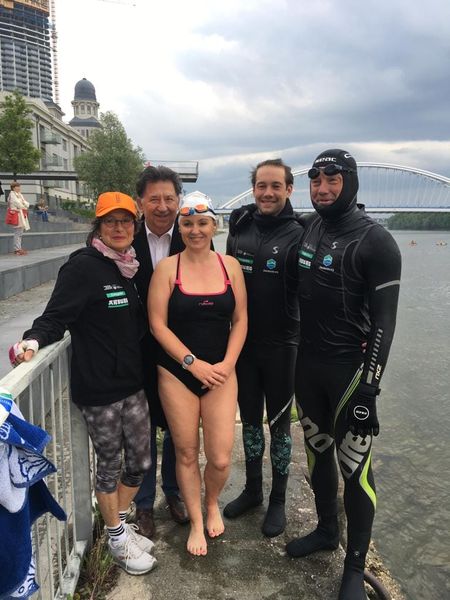 On 7 May 2022 professor of chemistry at Furtwangen University of Applied Sciences in Germany Mr Andreas Fath arrived in Bratislava where he was personally welcomed by the Minister of Environment SR (source of images: https://www.facebook.com/cleandanube/). He swam several kilometres together with Soňa Rebrová, who is also swimming for clean rivers. https://fb.watch/cSjTa4ELP6/